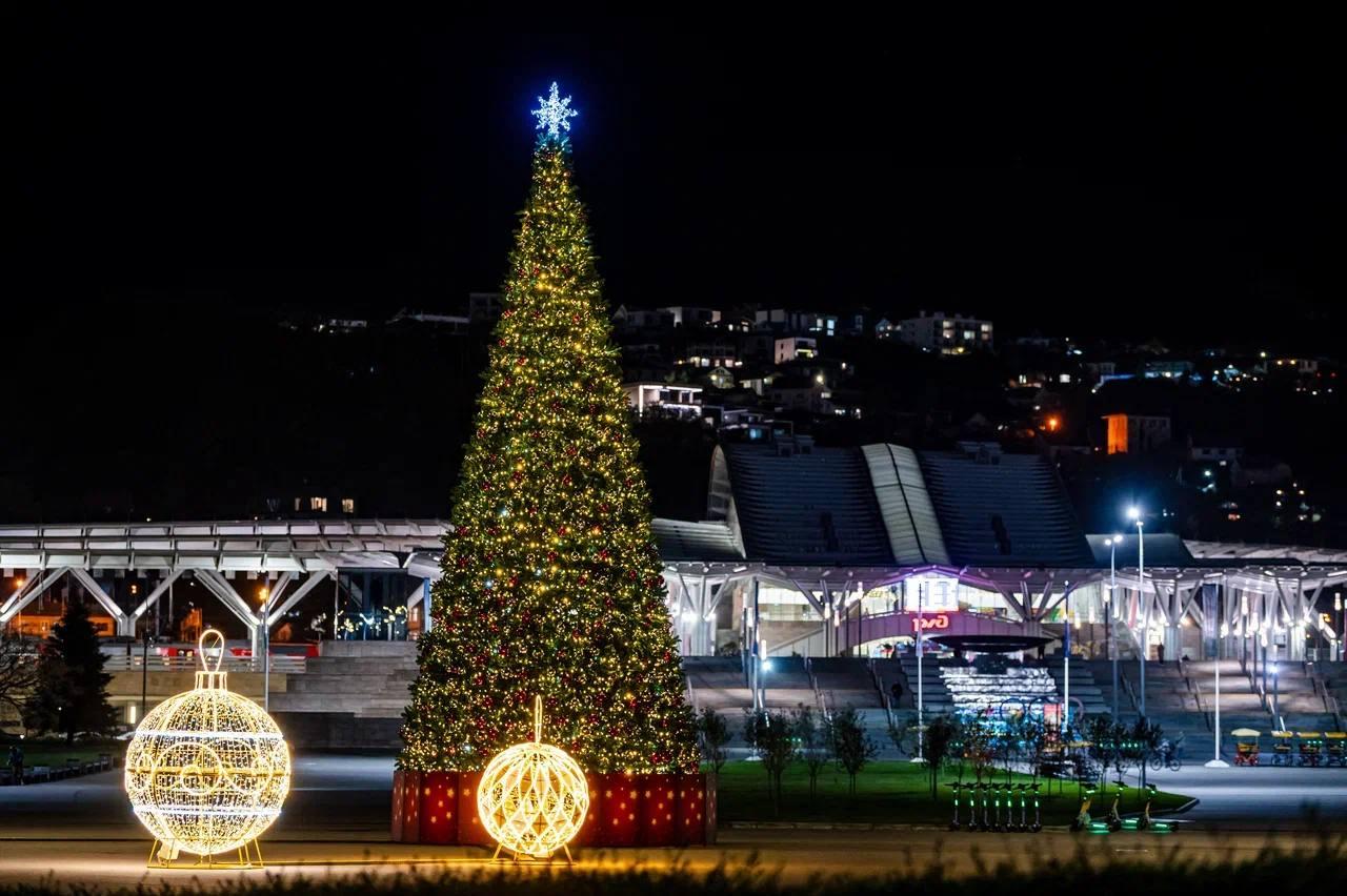 Праздничная елка украшает пространство у «Мантеры».