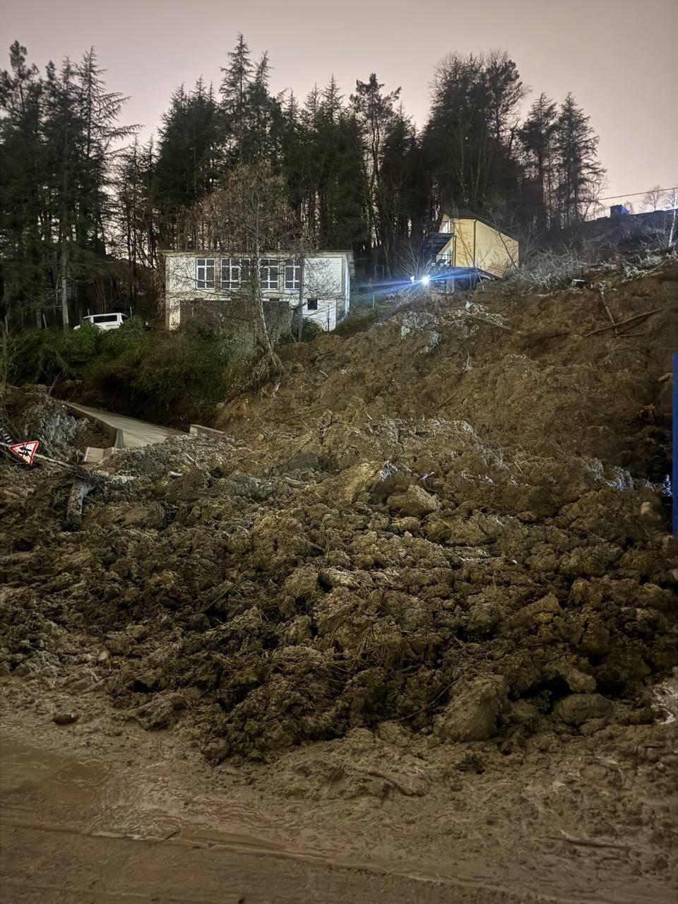 Очевидцы сообщают об активном движении значительной оползневой массы. Дорога в направлении объездной трассы перекрыта, упавший дорожный знак повредил линии электропередачи, оставив один из жилых домов без электричества. Сохраняется риск дальнейшего смещения грунта.
