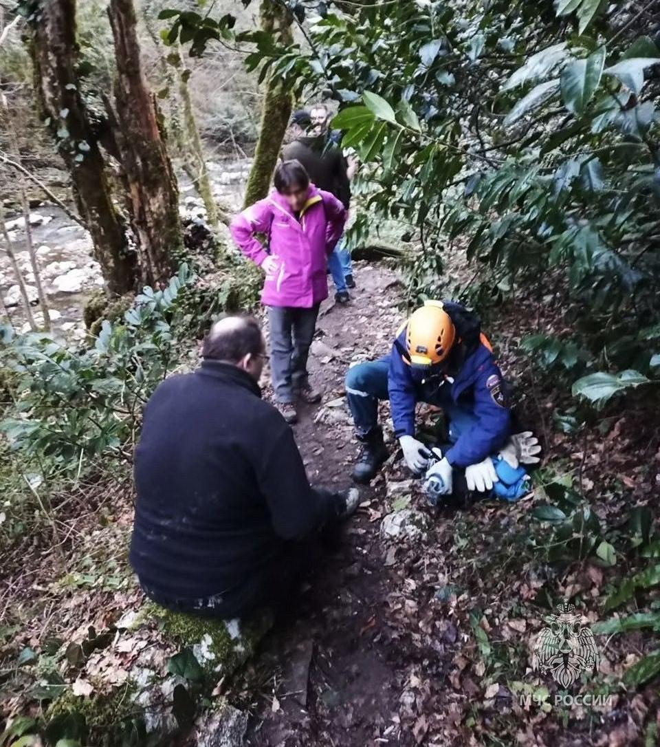 52-летний турист получил травму голеностопа во время прогулки по Агурскому ущелью в Сочи. Он находился там с супругой, направляясь к водопадам, когда на сложном участке тропы повредил ногу и потерял возможность продолжать путь.