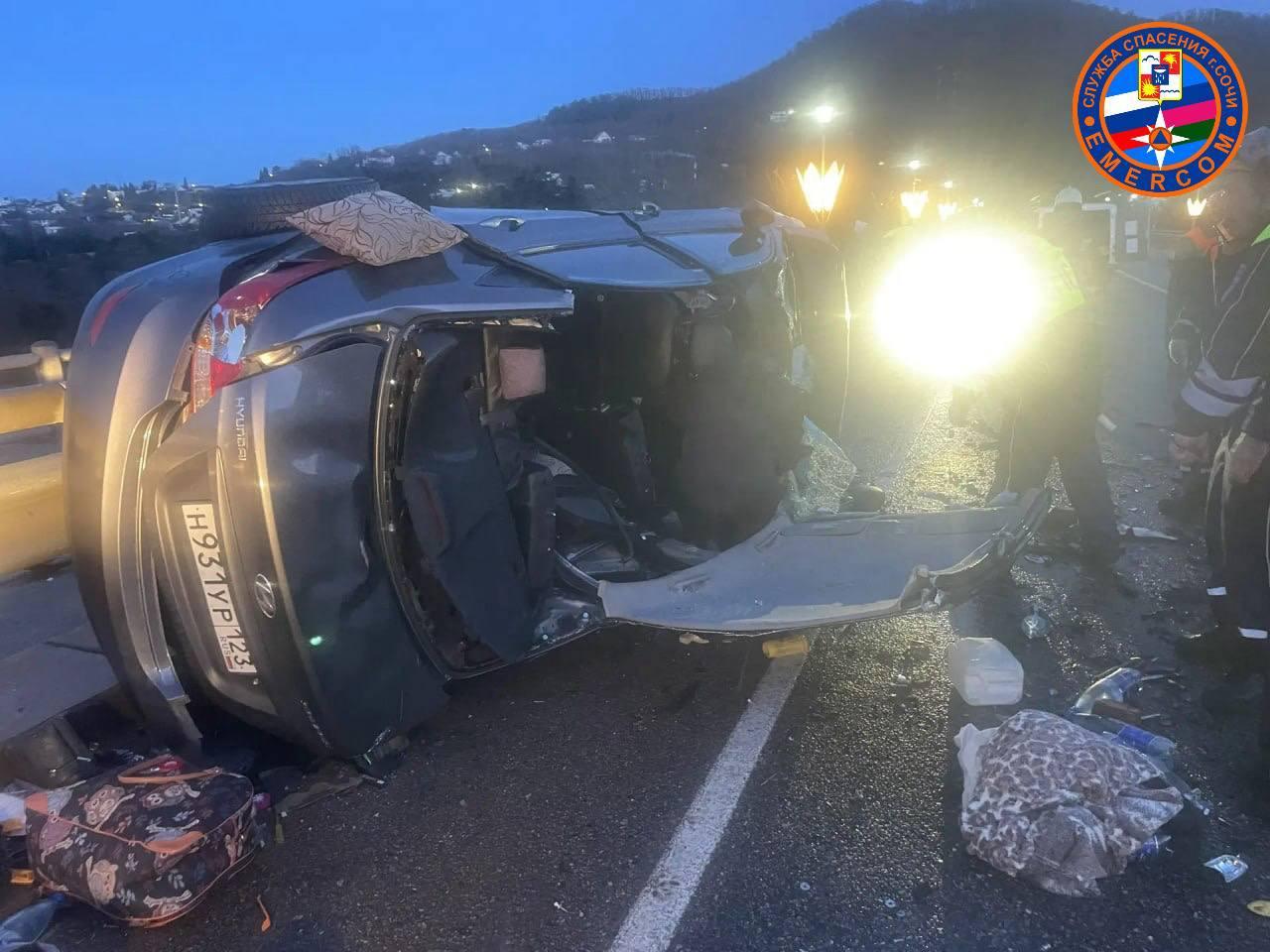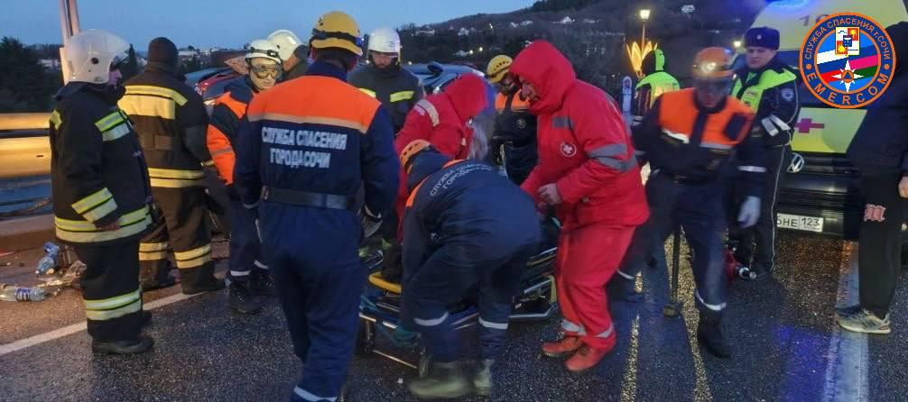 Серьезное столкновение двух легковых автомобилей произошло утром на мосту через реку Шахе в Лазаревском районе Сочи. В результате аварии пострадали пять человек.