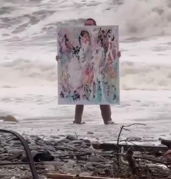В Дагомысе молодой художник решил использовать бушующее море как фон для съемок. По словам очевидцев, он выбегал в воду с картиной собственного авторства, чтобы создать контент для социальных сетей, игнорируя рекомендации спасателей.