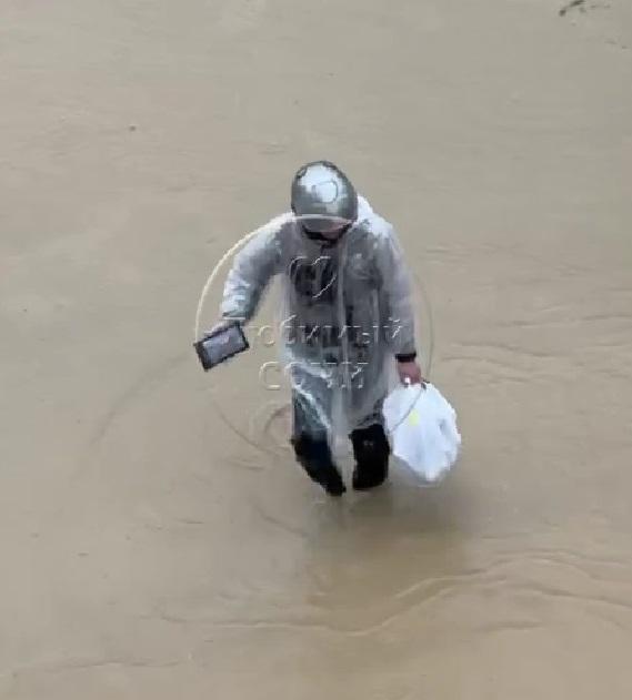 На месте работают сотрудники МЧС России, которые контролируют ситуацию и готовы при необходимости откачать воду. Очевидцы также сняли, как курьер, оказавшись по колено в воде, попытался доставить заказ, но был вынужден отказаться из-за обширного скопления воды на дороге.